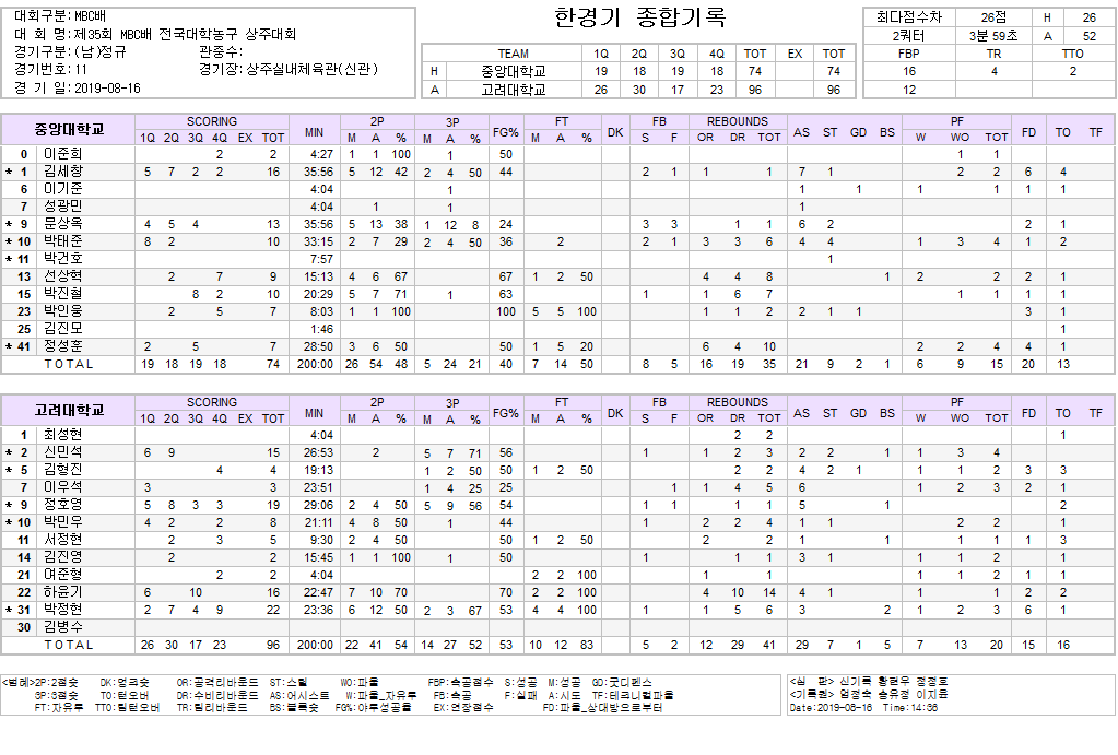 2019/08/14 - [농구 이야기] - [MBC배대학농구] 2019.08.14. 고려대 vs 단국대 (고려대 승)