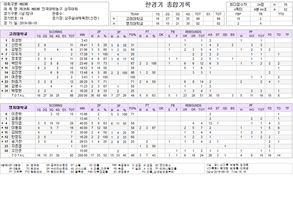 2019/08/16 - [농구 이야기] - [MBC배대학농구] 2019.08.16. 고려대 vs 중앙대 (고려대 승)