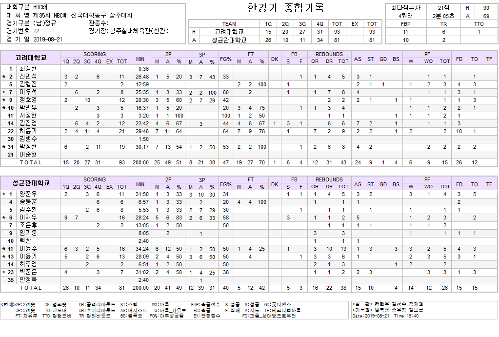 2019/08/16 - [농구 이야기] - [MBC배대학농구] 2019.08.16. 고려대 vs 중앙대 (고려대 승)