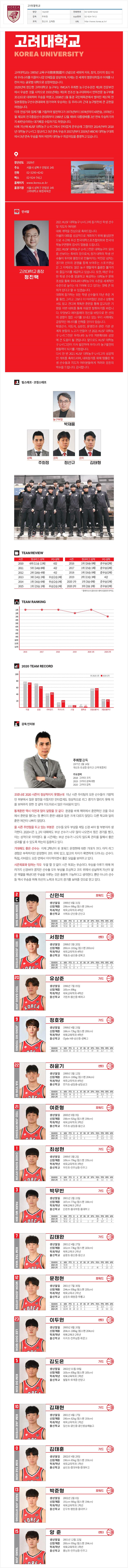 2021 고려대 농구부 코칭스태프 및 선수 명단