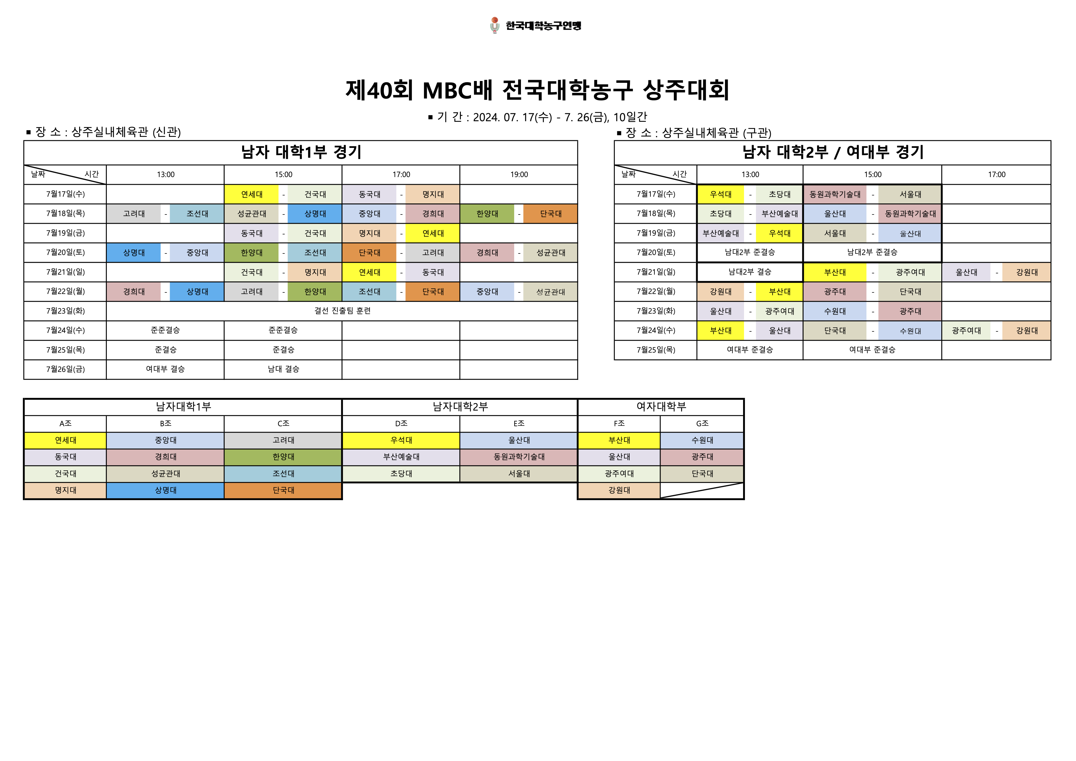 * 주최주관: 한국대학농구연맹