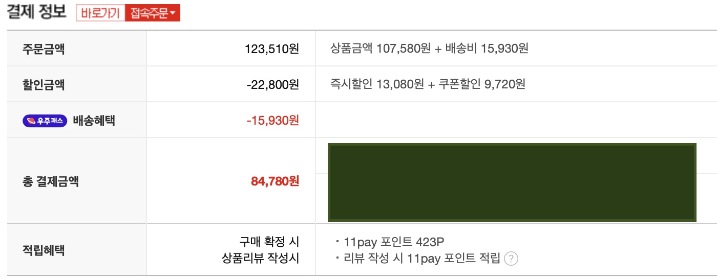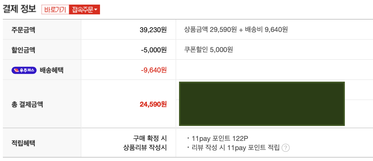구입은 11번가 아마존을 이용했다. 우주패스를 구독중이라 5,000원 할인 쿠폰이 있기 때문에 가격적인 장점이 있었다.